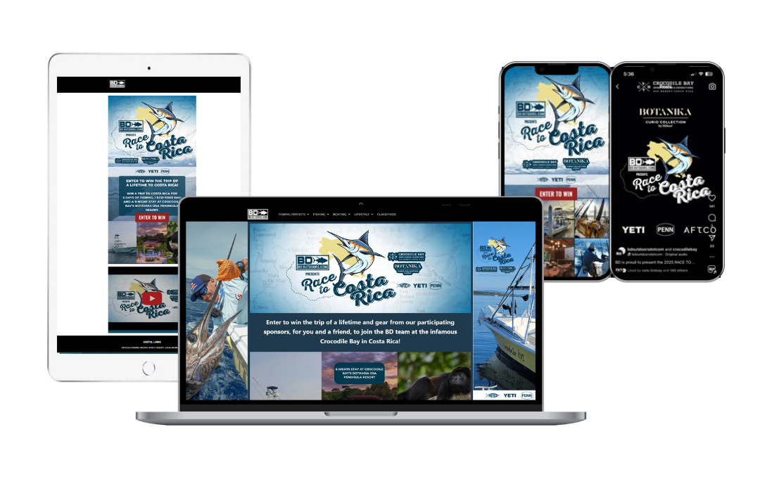Designed and executed a 6-month “Race to Costa Rica” contest, engaging anglers and adventure travelers with an immersive call-to-action.